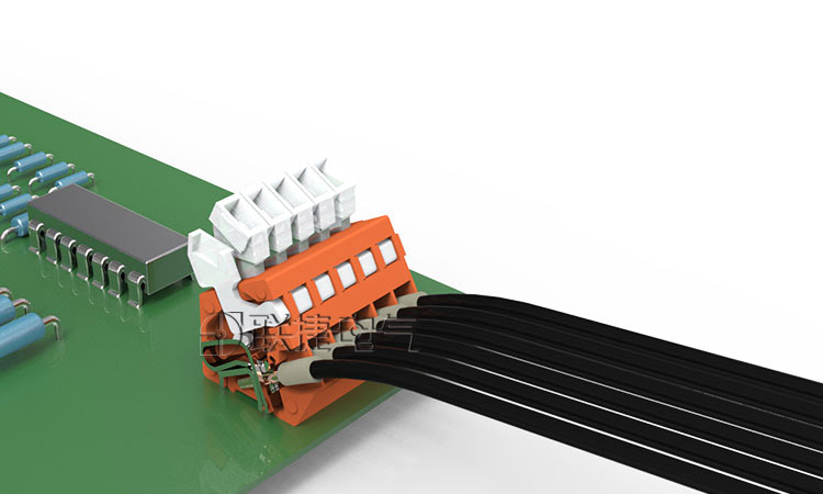 弹簧式接线端子是通过弹片本身具有的弹性固定住进入端子内部的导线,从而实现导线与导电件的紧密接触完成连接。弹片通常分为蝶式弹片和笼式弹片两种,接线方式相同:借助端子自带的按钮或螺丝刀将弹片下压,将导线插入接线孔,松开按钮或拿出螺丝刀即可完成整个连接过程。值得提醒的是,导线接入插孔时要将导线推到最底,防止导线滑落而影响系统运作。与压线框端子相同,在选购端子的时候需要询问所需线径的大小,根据需要购买,如若真的不凑巧,可按照框式端子的导线接入方式处理过粗或过细的导线。